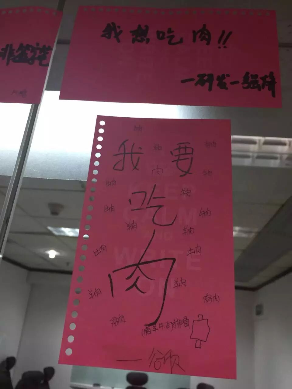 这是一堵心愿墙,每位同事将自己的小小心愿贴到墙上。再由其他同事摘下心愿卡,为其实现。比如:
